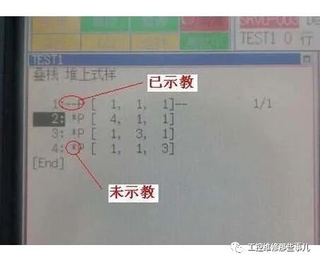 (3)码垛功能,即码垛指令、码垛动作指令和码垛结束指令。存在于一个程序中并发挥作用。即使只有一条指令被复制到子例程中教学,这个功能不会正常工作,要注意