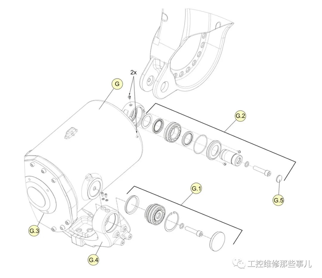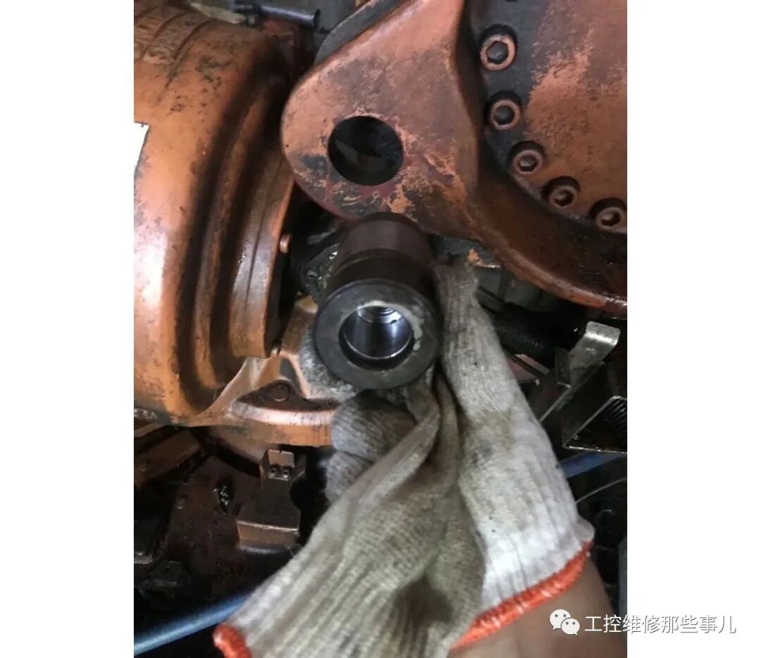 4.取下平衡杆与第二轴连接处的盖板(螺丝刀可以关掉),取出中间的六角螺钉,然后用专业工具取出轴承;