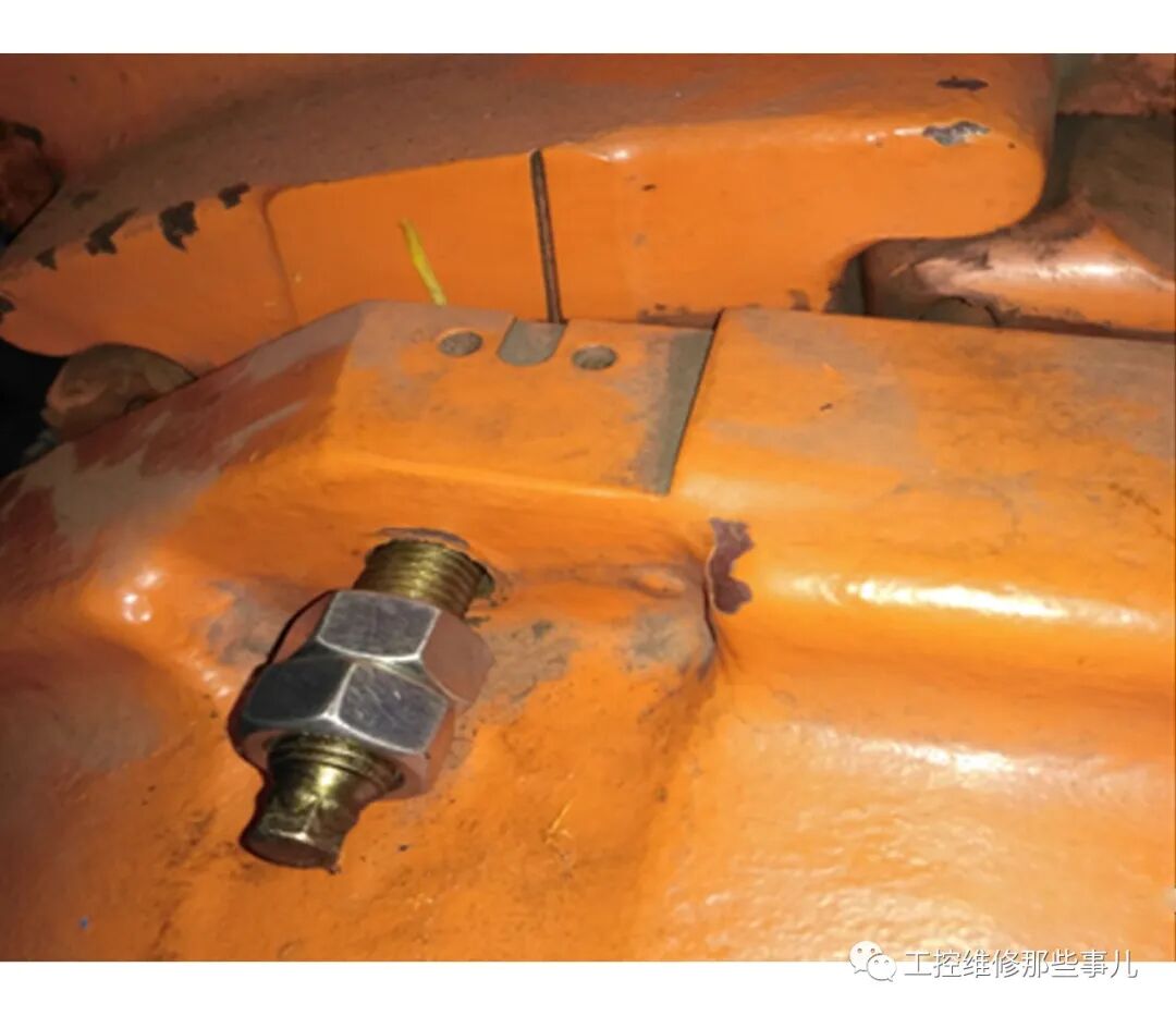 3.拆开平衡杆后端的盖板,翻过来重新固定在平衡杆上,分别用四个长螺钉和螺母固定;拧紧螺母,使其均匀受力,使平衡缸的中间杆微微露出,表示已受力;