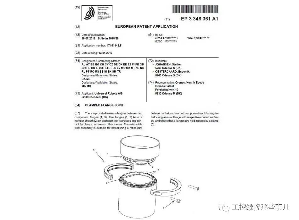 点击上方「蓝字」,关注我们 UR目前还使用另外两种接头连接方式,其中一种是受保护的。 UR的机械结构自发布以来一直在更新。虽然外观乍一看很接近,但是变化很多,变化很大。 由于UR的模块化设计,两个接头连接时会有一个螺丝的问题。通常,我们通过在外部添加法兰来处理这种连接问题。比如在ABBRB120的一个轴上长出一圈法兰来拧螺丝,但这样会使两个圆柱体的直径不一致。优点是底座部分和旋转部分可以先分开安装,然后用一圈螺丝把两个组件拧在一起。 另外一种方法是在机器人内部拧螺钉,比如说FANUC 200id的一轴,他底座(base)和减速机之间的螺钉就是从内部从下往上拧的,这样做外表面直径可以做到等直径过度,但是问题是必须先把减速机和转座(swing)部分的铸件装好再装1轴电机。 一代连接方式,如下图所示: 密集恐惧症看了会流泪,没错,最早的UR5就是这么粗暴,外圈直接在径向锁了一圈螺钉。这种径向连接的方式在很多机器人都被使用过,尤其是轻是化的协作机器人,比如说kinova也用了这种方案,不过螺钉没有这么突兀. 侧向拧螺钉的问题在于,螺钉很多时候是靠螺钉头与铸件之间的摩擦力来承受主要的应力,这远远不如常规方法中的拉拔力来的实在,同时各个方向的螺钉拉力方向不一样使得铸件本身会受到各个方向的内应力,也不适合质量管控。因此这种径向连接的方式只适合受力不大的情况。 所以出于颜值和正义的考虑,UR在第二代螺钉锁固的方案做出了改变。采用了预拧螺钉-穿孔-旋转-拧紧的解决方案,这个也是其他答案里提到的方案。 安装的时候,外六角螺钉先插入一个关节的螺纹孔,为什么用外六角后面就知道了,拧入一个深度。。。对。。不能拧紧,又不能不拧。 然后插入对面关节的圆孔,再旋转一个角度,这样螺钉孔就压在半长槽孔上了。 关节之间相对转动的位置通过一个径向的锥形沉头螺钉来定位,这种定位方式在其他地方还有用的,后面会提到。 然后就是用外六角的扳手一个一个的去拧紧这些螺钉,为什么用外六角。。。因为内六角进不去。。。 这种连接方式虽然能保证螺钉头的位置不超出圆柱的直径范围,但是缺点实在太烦了,以至于在第三代的设计中被舍弃了。 第一个缺点是由于螺钉头所压的区域并非一个完整的圆面,导致螺钉接触面积变小,举个例子比如说铝合金的抗压强度是240MPA,由于受压面积减少了1/6,那么螺钉所能产生的压力就会减少1/6,否则就会把这个局部压溃,对应的螺钉头所产生的摩擦力也会减小。 所以为了保证足够的压力面积,UR在说明书提到了使用垫片的方法来增加接触面积。但是活动的垫片给安装带来了巨大的麻烦。同时这种外六角螺钉也很以8.8级居多,不太行。。。 另一个缺点是拧螺钉绝对是反人类,这么狭小的空间无法使用棘轮扳手,所以拧紧螺钉需要扳手进去拧半圈,再退出来。虽然UR有很多令人拍案叫绝的设计,但是这种拧螺钉的方式绝对是脑动大开的反人类反生产反售后的设计,奉劝大家不要学。 这次的设计再次出现了巨大的设计变革,对于力矩较小的关节依然采用了径向锁紧的方式,只是这次外观有了很大的改进。 分别由锥形沉头螺钉用作定位,内六角螺钉作为拧紧。 这种方式成本较低,安装方便,在低扭矩需求的情况下问题不大。 而在大扭矩的关节连接设计上,UR再次展现了什么叫限制你的不应该是设计,而是脑洞。 关节两侧分别加工出锯齿状的设计,然后用两个C形卡箍抱紧 具体设计可以去看一下EP3348361A1-CLAMPED FLANGE JOINT这个专利 以上就是UR的3代设计方案简述以及解决思路,其实机器人的连接方式远远不l止这几种,要因地制宜,结合具体需求来选择和创新不同的连接方式。 有需要优傲UR机器人维修调试,硬件故障,系统软故障的朋友欢迎随时联系我们!江苏恩勒科技有专业全面的测试平台,配件充足,维修周期短,技术过硬,值得信赖 本文选自网络,版权归作者所有!UR两种接头连接方式